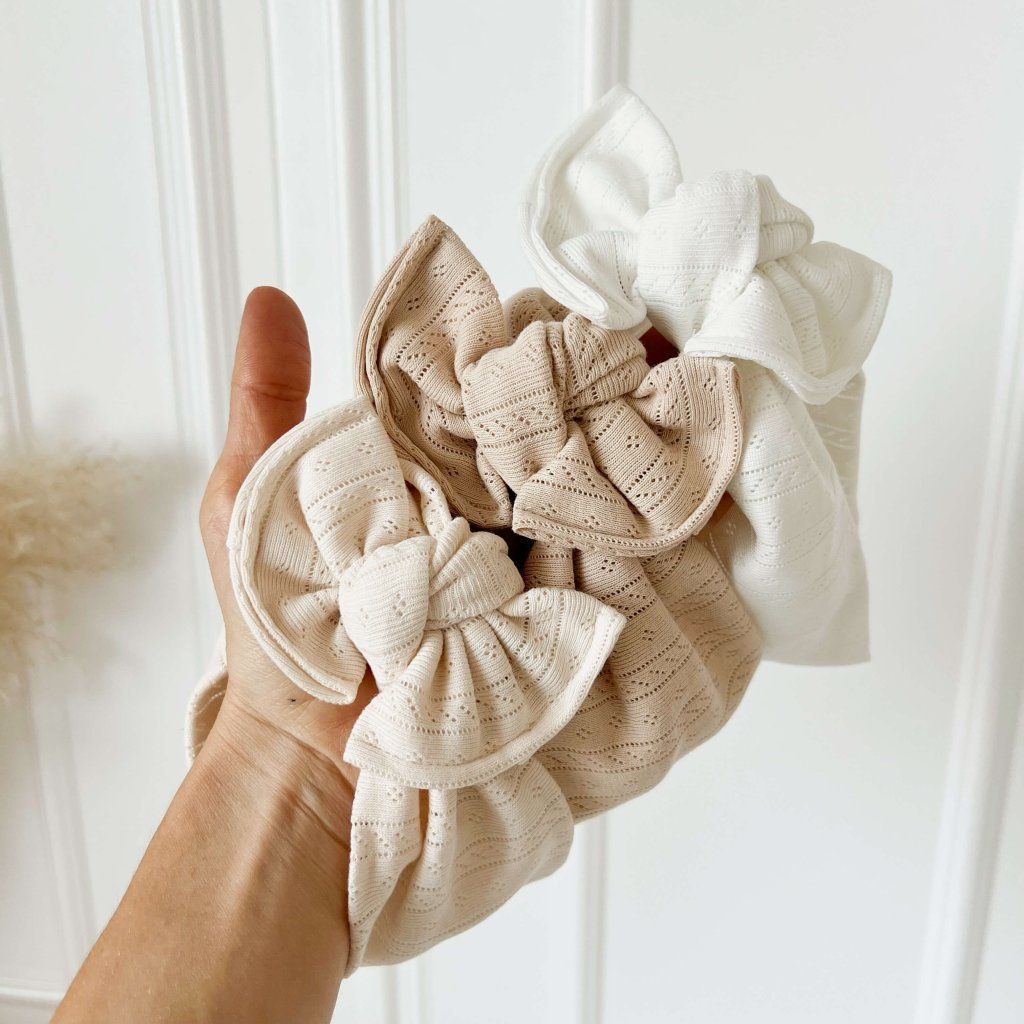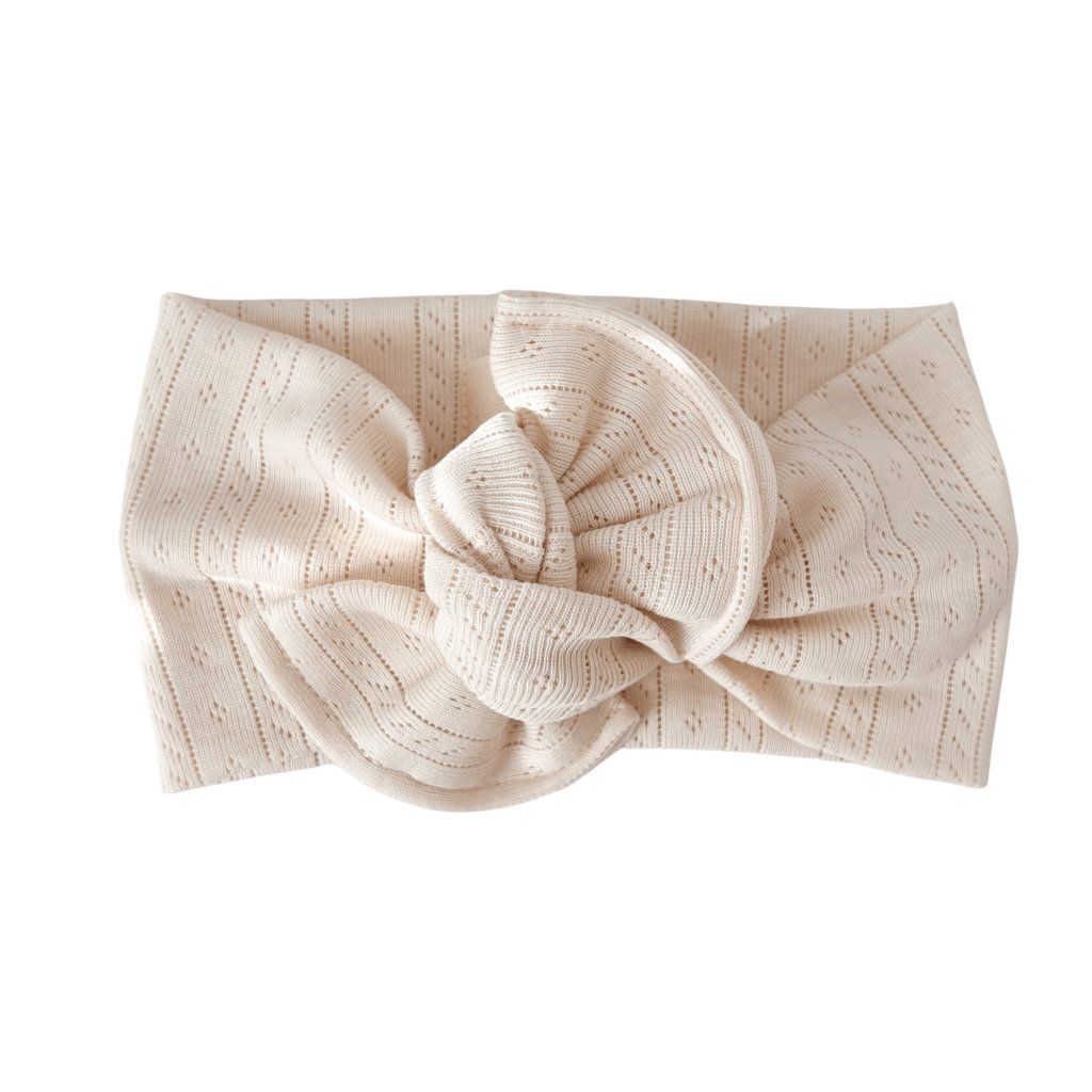 Bavlněná čelenka s mašlí pointelle - LATTE