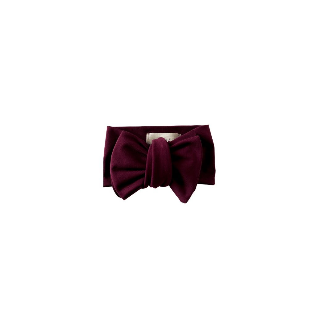 Bavlněná OVERSIZED čelenka s mašlí - DARK BLACKBERRY