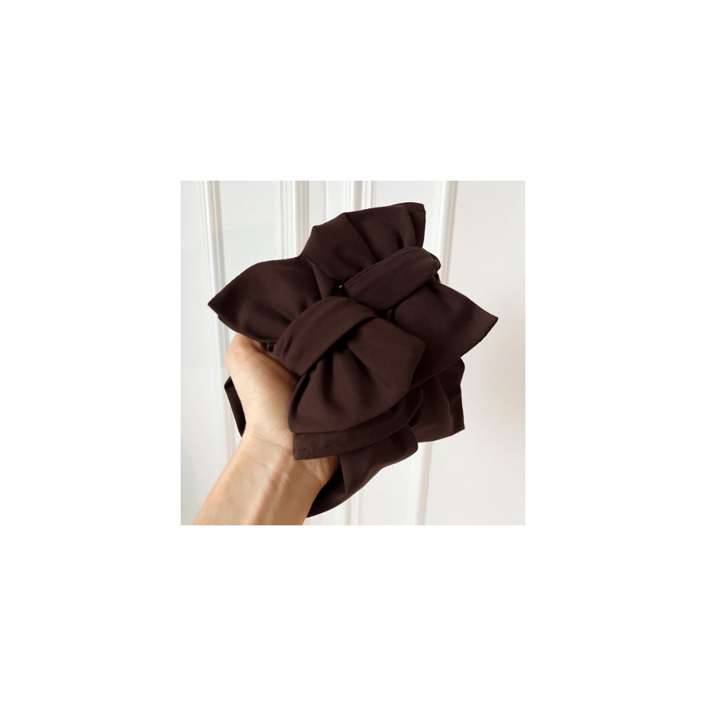 Bavlněná OVERSIZED čelenka s mašlí - DARK CHOCOLATE