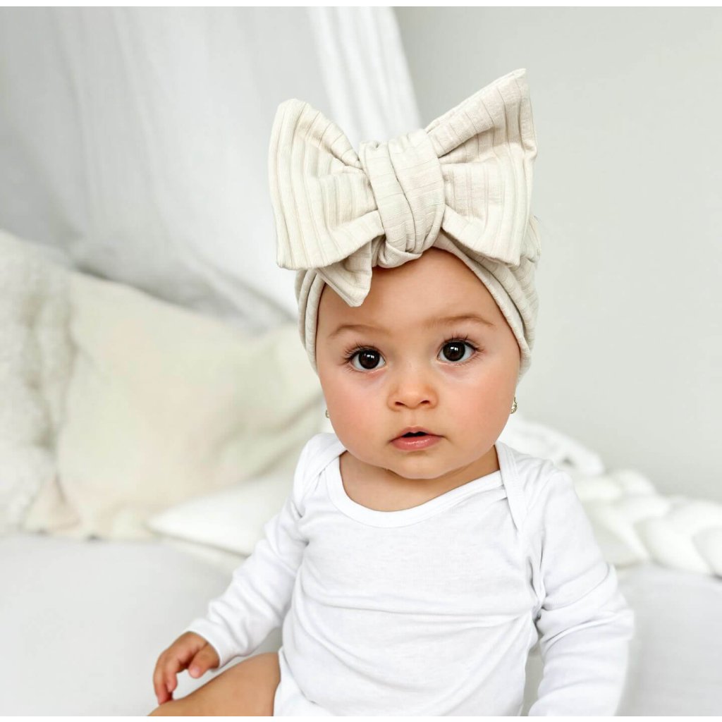 Bavlněná OVERSIZED čelenka s mašlí široké žebro - CREAM