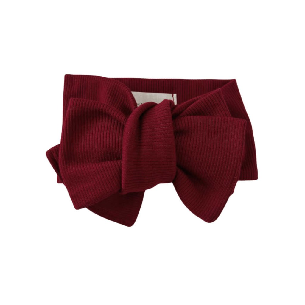 Bavlněná OVERSIZED čelenka s mašlí žebrovaná - BORDO