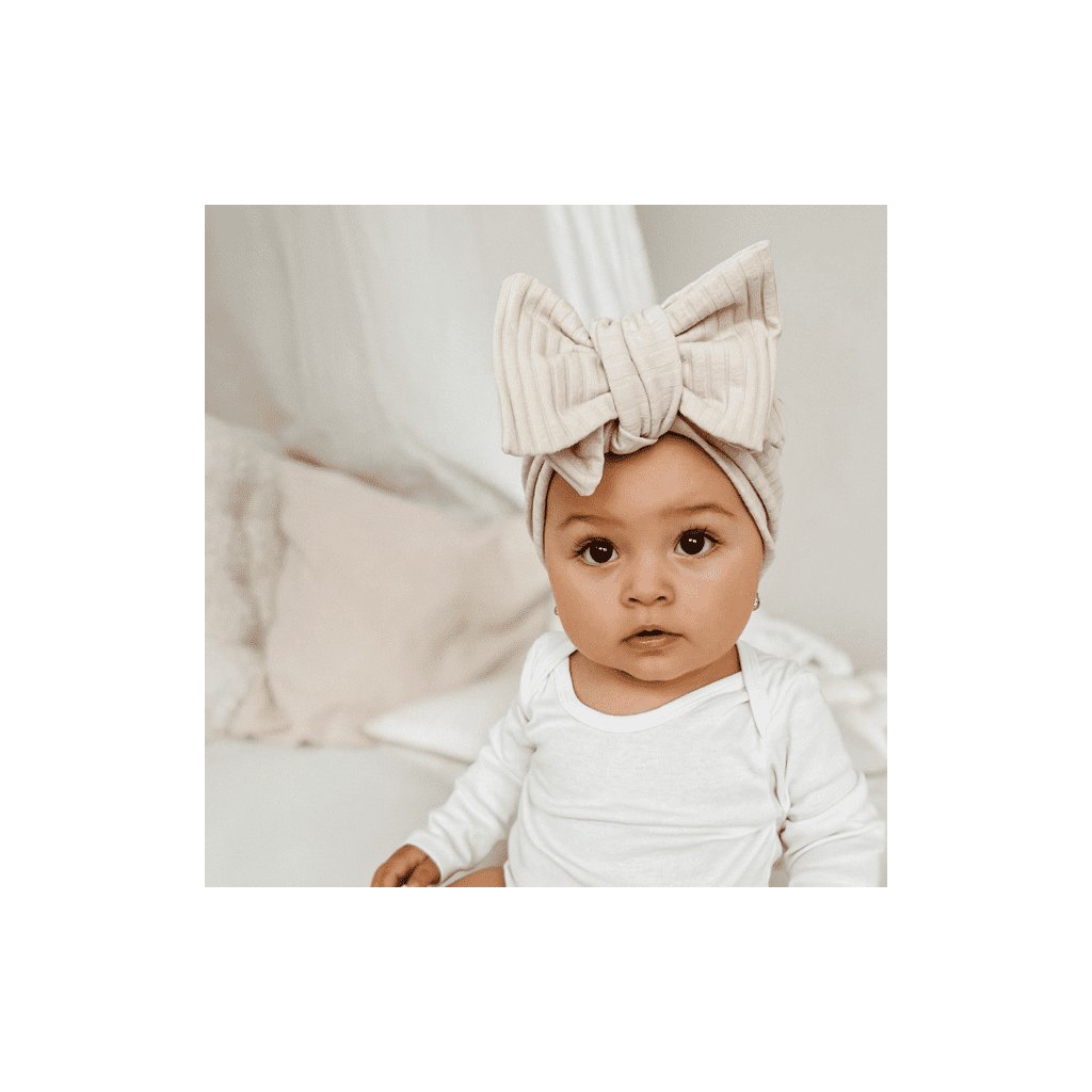 Bavlněná OVERSIZED čelenka s mašlí žebrovaná - krémová