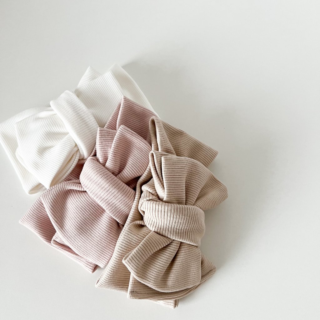 Bavlněná OVERSIZED čelenka s mašlí žebrovaná - PINK POWDER